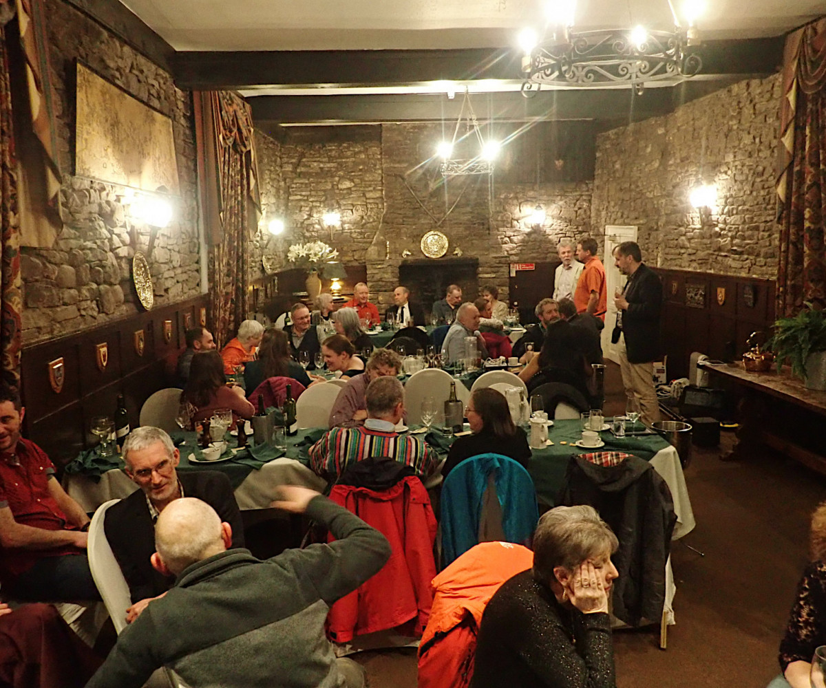 It was a return to The Bear in Crickhowell for this year’s Annual Dinner, where a very enjoyable evening was had, as well as an excellent three course meal. As always an appetite was worked up beforehand with a varied selection of caving in our local caves. This included an Ogof Cnwc trip, and a Daren through-trip via Man in the Roof including a foray into Misfit Passage. There were also a number of very different Aggy trips including one team digging in Midnight Passage, while another team successfully bolted up to a high-level passage in Main Passage, plus the traditional annual Aggy bat count.