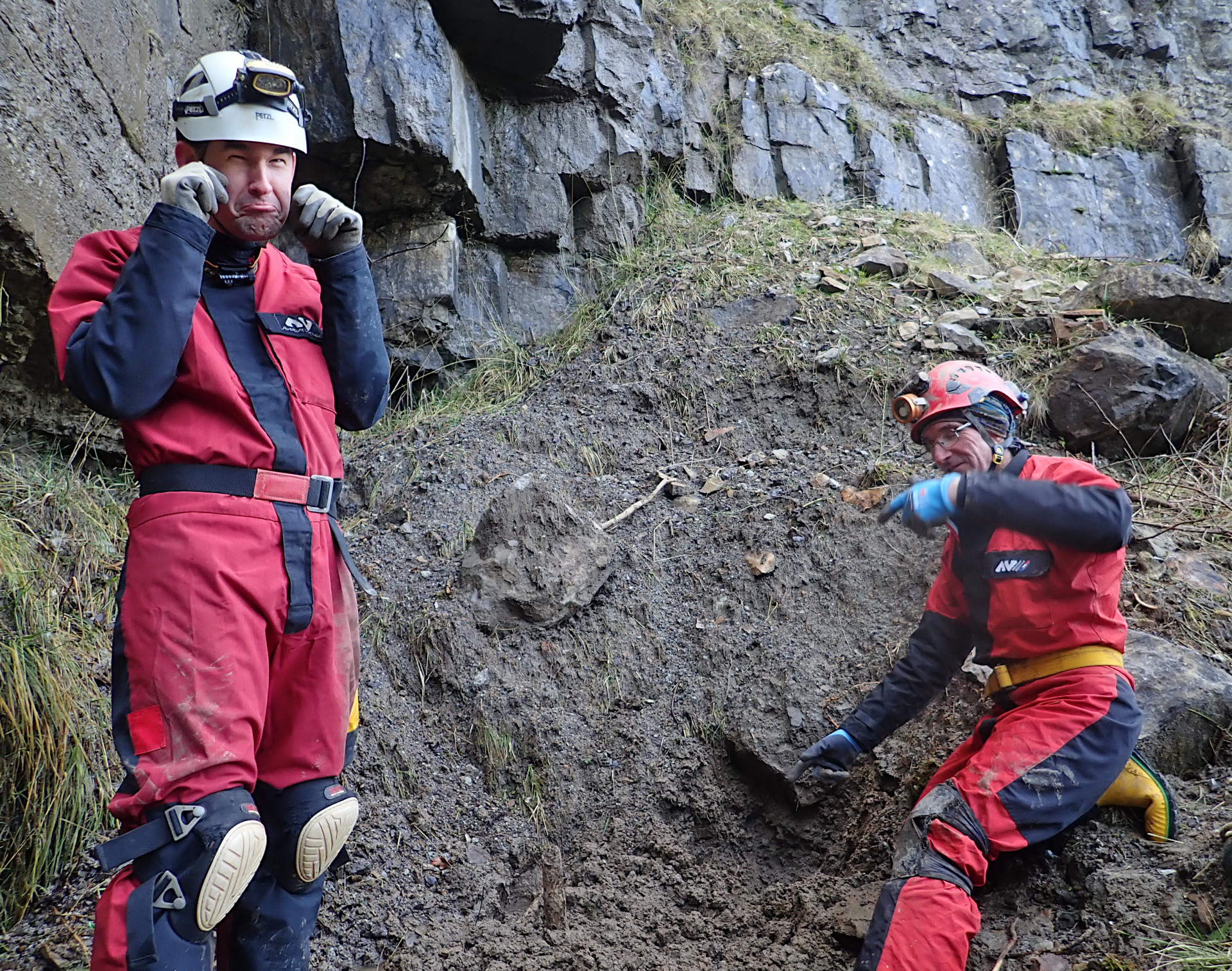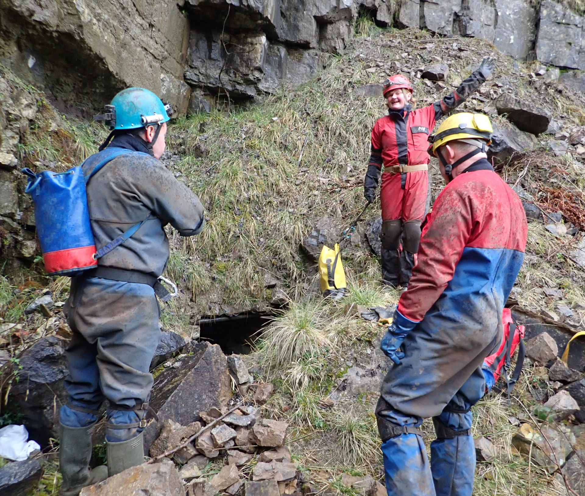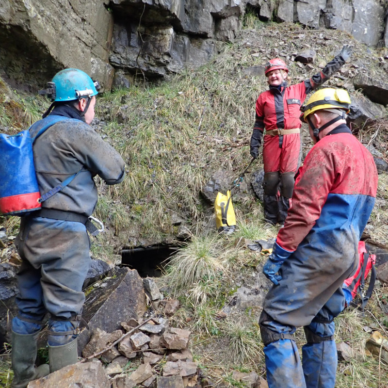 A number of members arrived early to enjoy an extra day of caving on the Friday. This was to be a venture down the fine streamway cave of Llanelly Quarry Pot, however on arrival the entrance was nowhere to be found! A collapse had occurred, completely burying the entrance, so a Plan B was needed…
