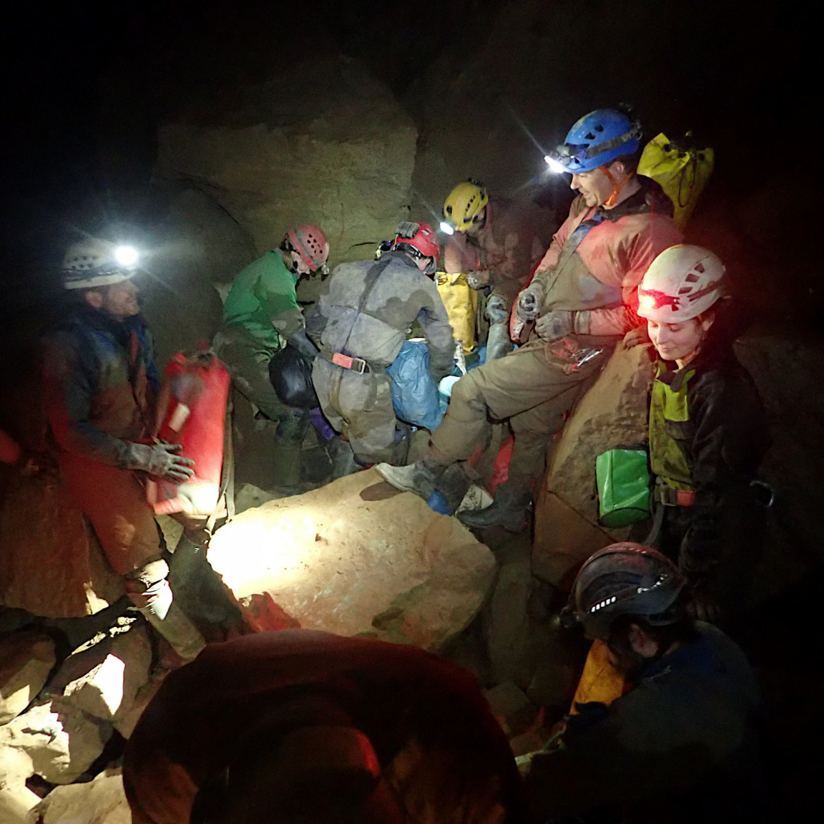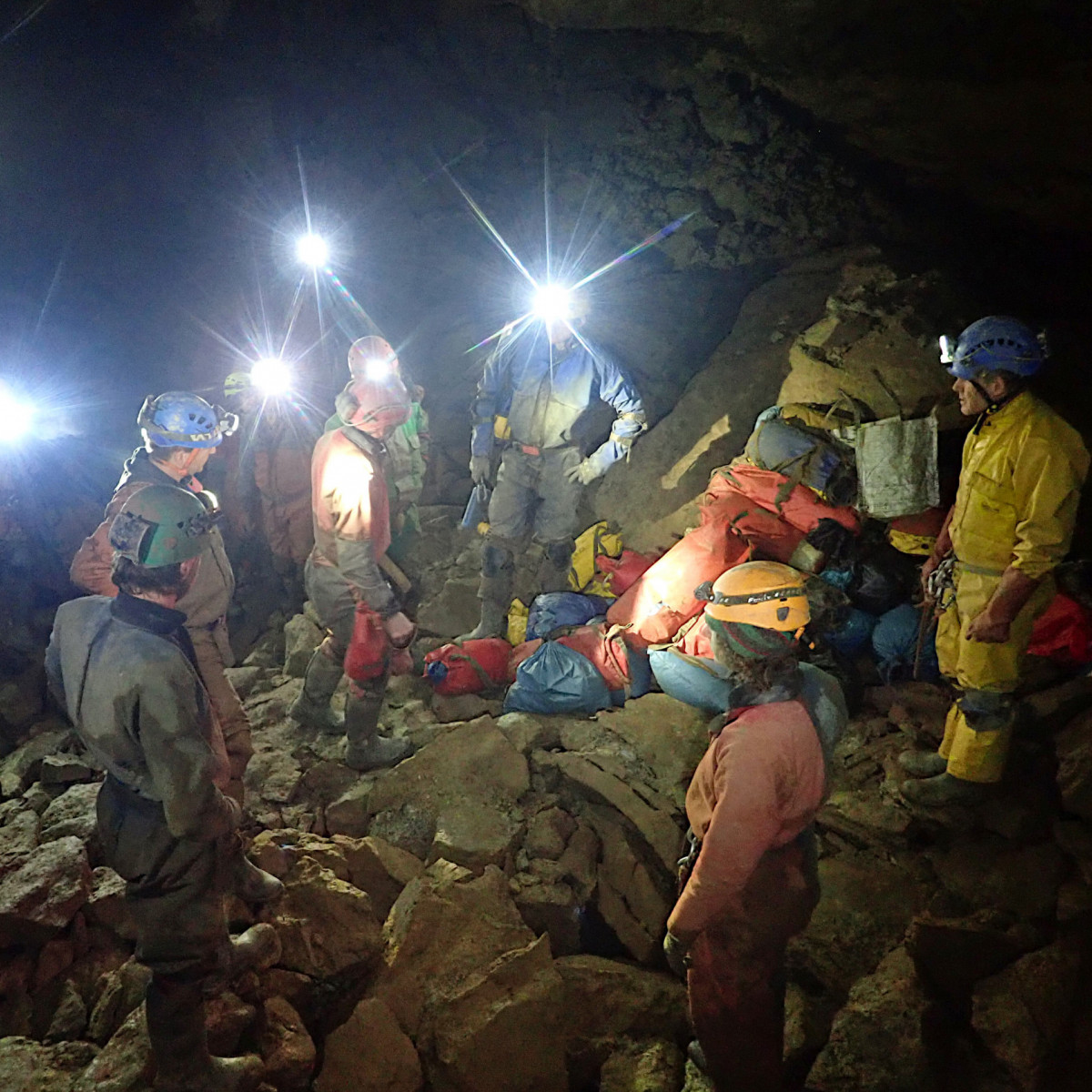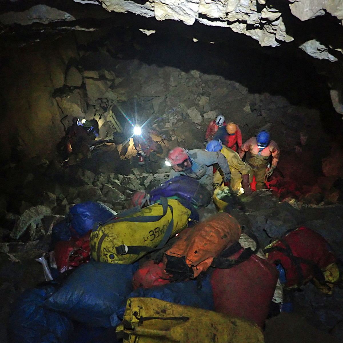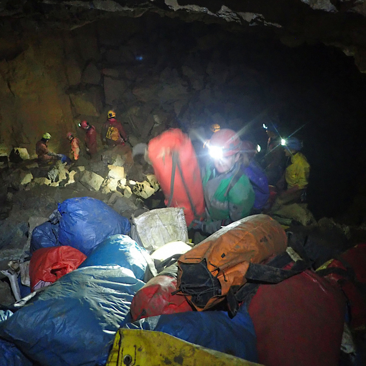 Bag pile at the climb up from Preliminary Passage