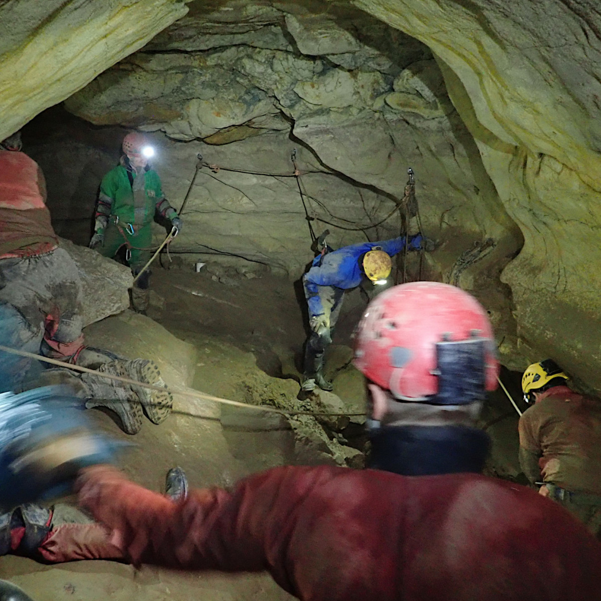 Rubbish bags from the Western Flyover and the Hard Rock Café camp had already been transported as far as White Passage at the foot of the rope climbs, but the epic challenge of transporting them through the next section of obstacles was definitely going to require a bigger team. Luckily help was at hand and a merry band of 22 cavers assembled at Whitewalls on a chilly Saturday morning in January to undertake the task.