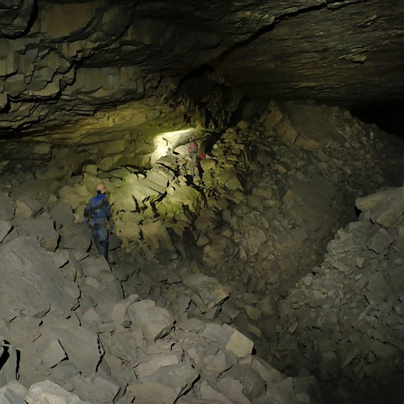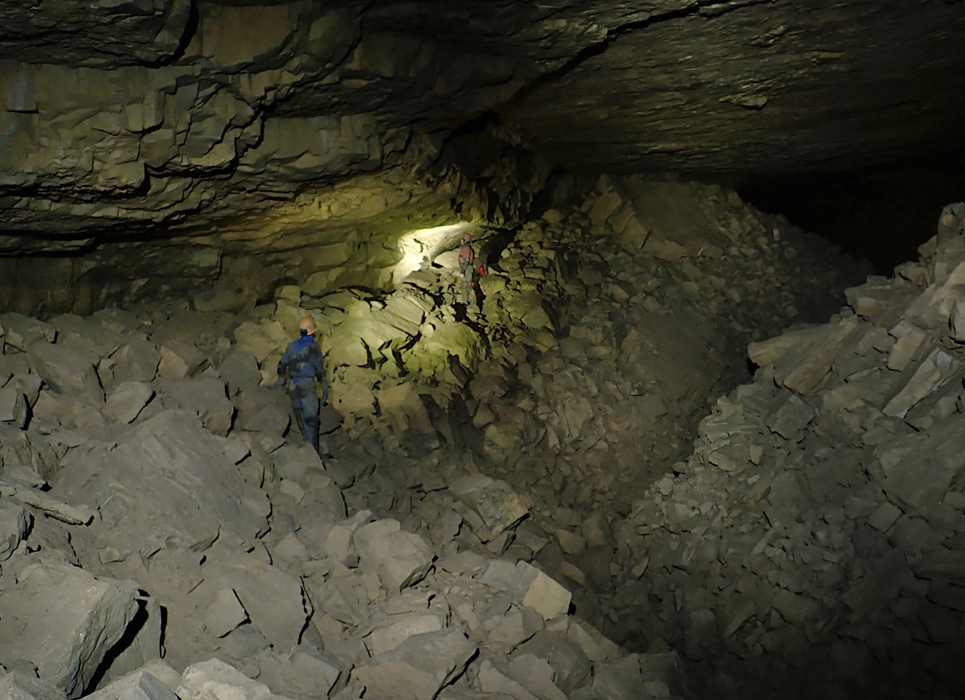 There were two trips on the Saturday, one to Agen Allwedd in the environs of the Music Room and the other to Ogof Draenen for lots of boulder hopping in the impressively large and lofty Big Country. A gazebo had been erected in the morning ready for the BBQ, which turned out to be most useful when it rained. Undeterred by a bit of moistness, the BBQ continued and was enjoyed by all - as was the barrel of beer.