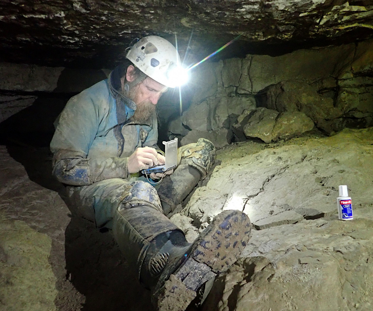 John surveying Spider Chamber, Midnight Passage