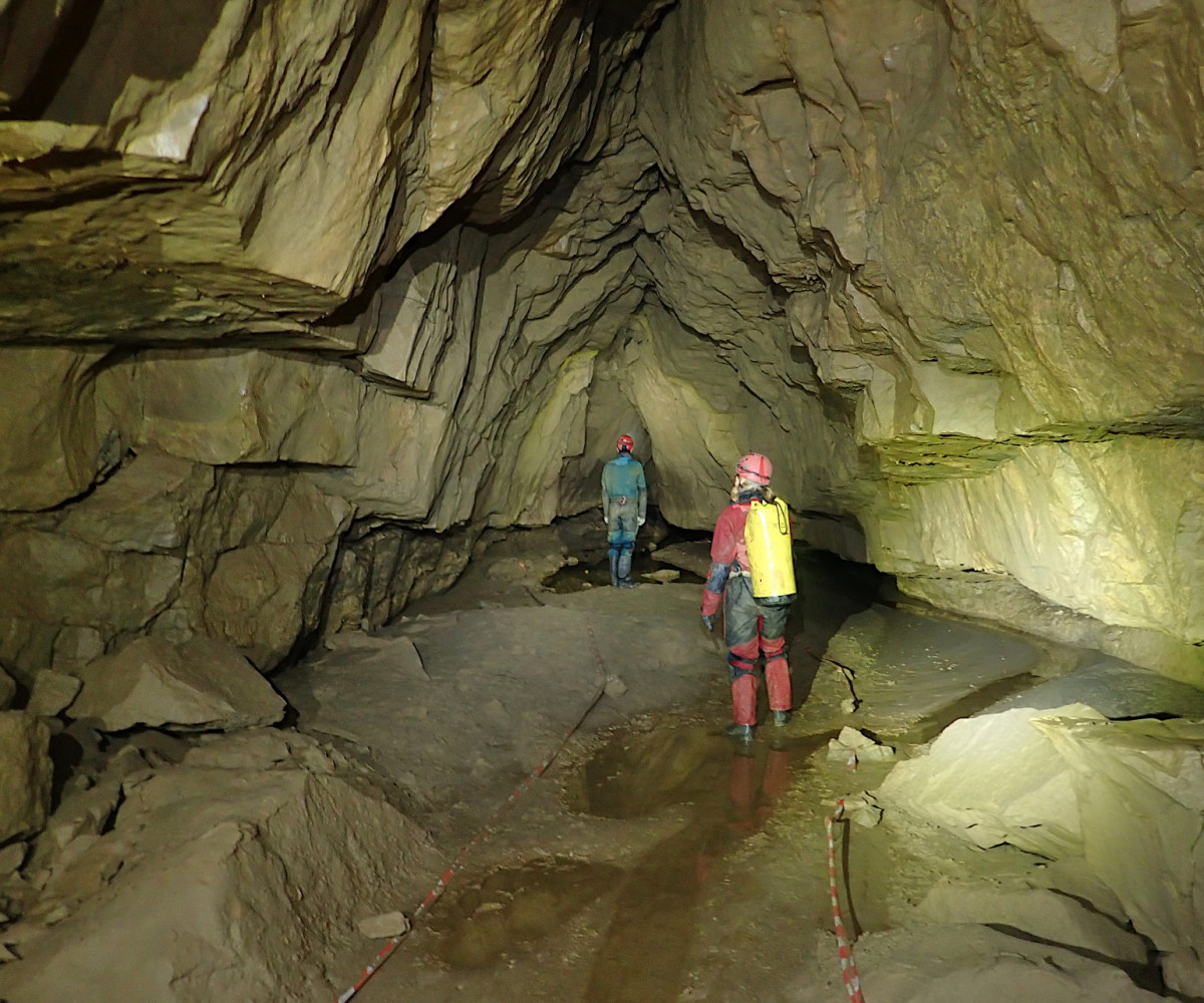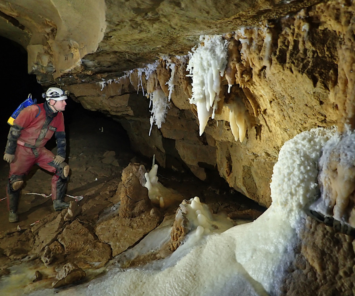 The Daren Cilau team did a through trip from the Daren entrance to Ogof Cnwc with a few detours along the way, including investigation of a possible dig in Eglwys Passage, Sponge Passage and as far as the ladder in Preliminary Passage. The Draenen team ventured to Dollimore Series to visit the fantastic Geryon formation, the well-decorated chambers at Circus Maximus and the Into The Blue streamway. The Aggy team visited Main Passage to de-rig the Lone Piton climb now that the high level explorations are concluded.