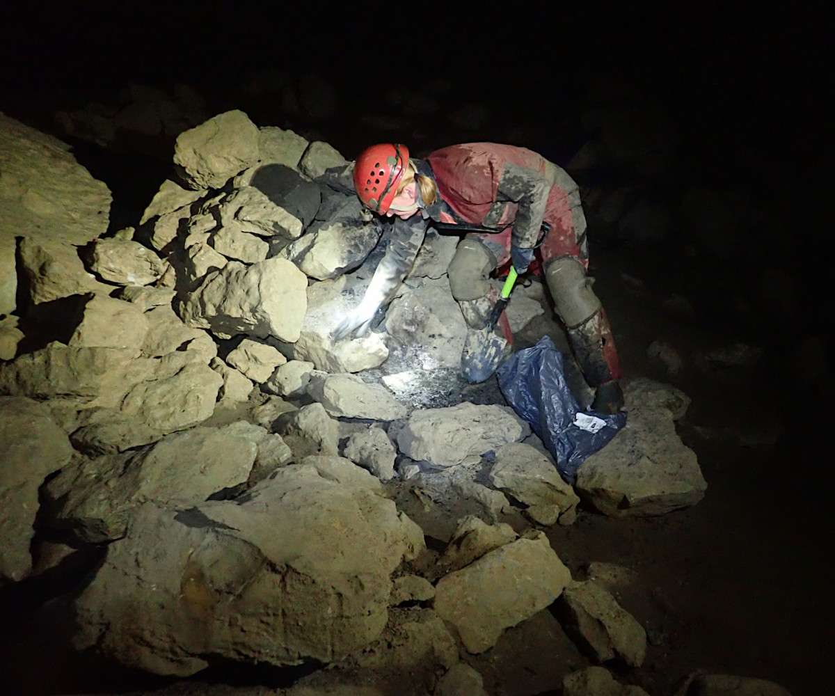 Cleaning up a fire pit, Eglwys Faen Main Chamber