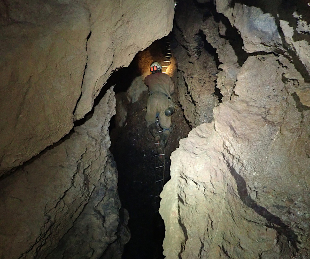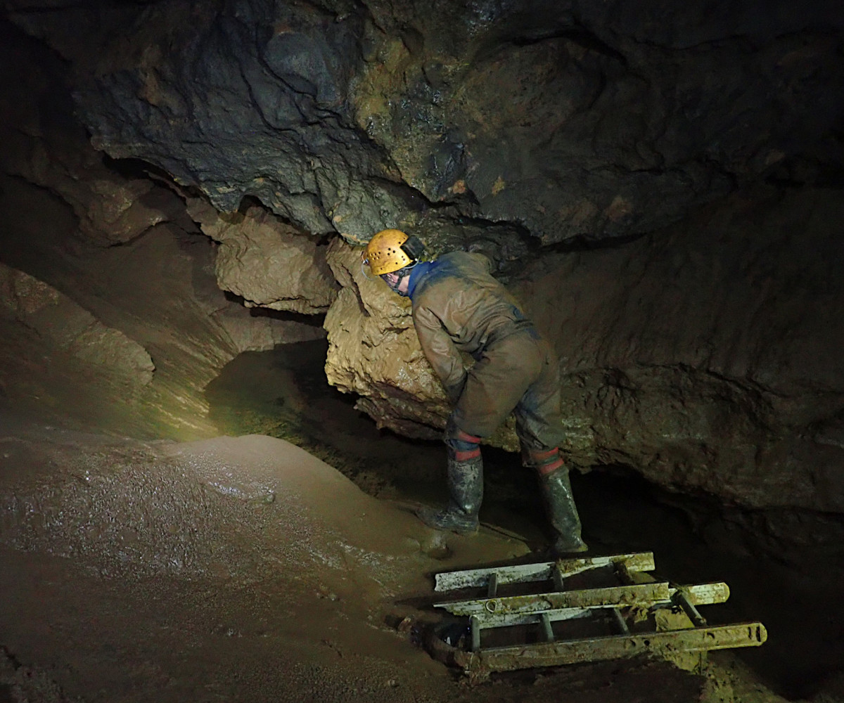 Ladder climb in Bath Swallet
