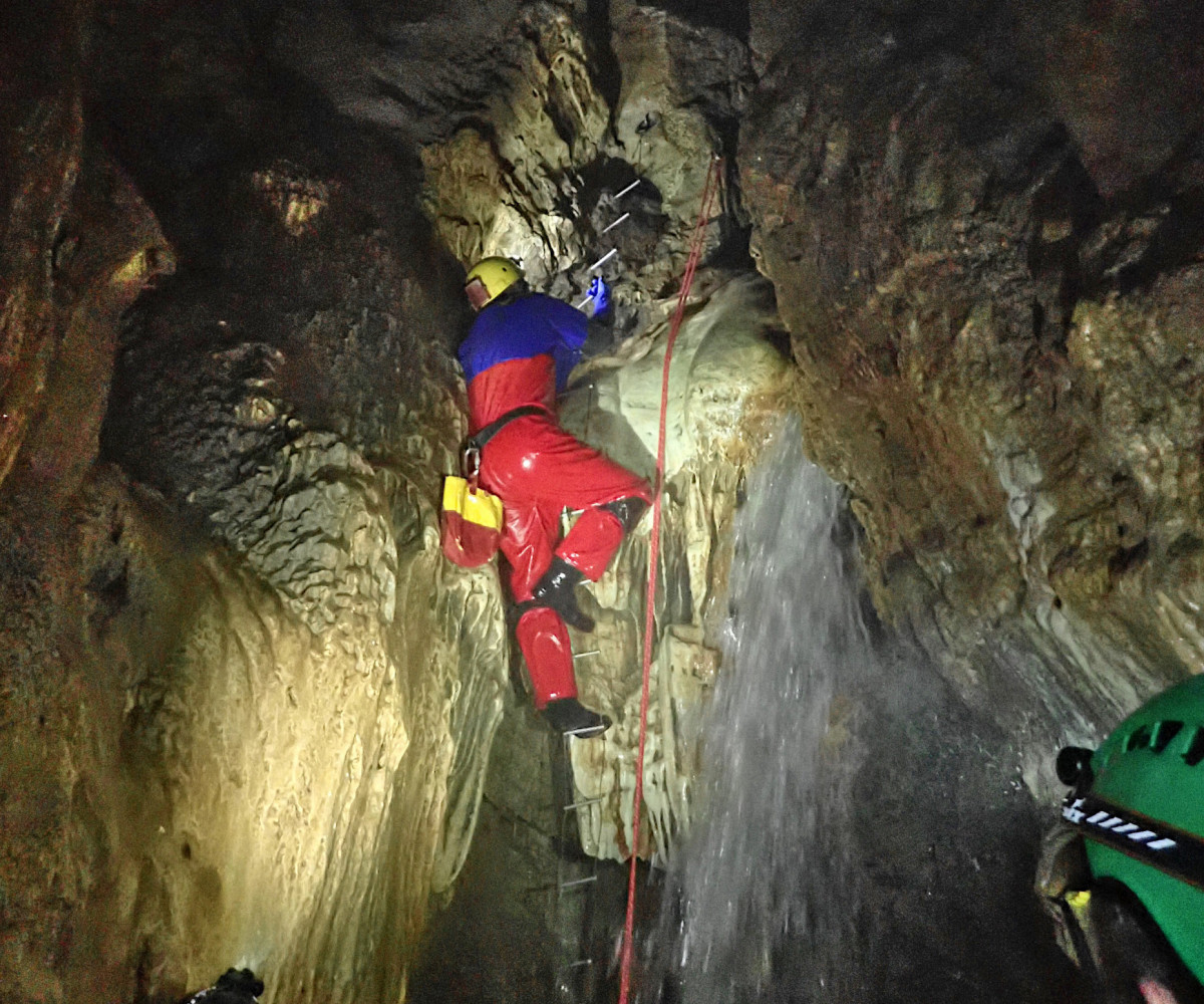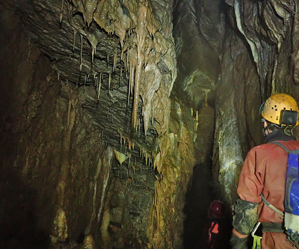 The caving activities started with a short trip to St Cuthbert’s Swallet on Friday evening for the team of seven that arrived early. After the sporting descent of rifts and ladders to Mud Hall a circular route was enjoyed from Gour Passage and The Water Chute to Cerberus Hall and Everest Passage, taking in the notable formations of Curtain Chamber, The Fingers and The Cascade along the way.