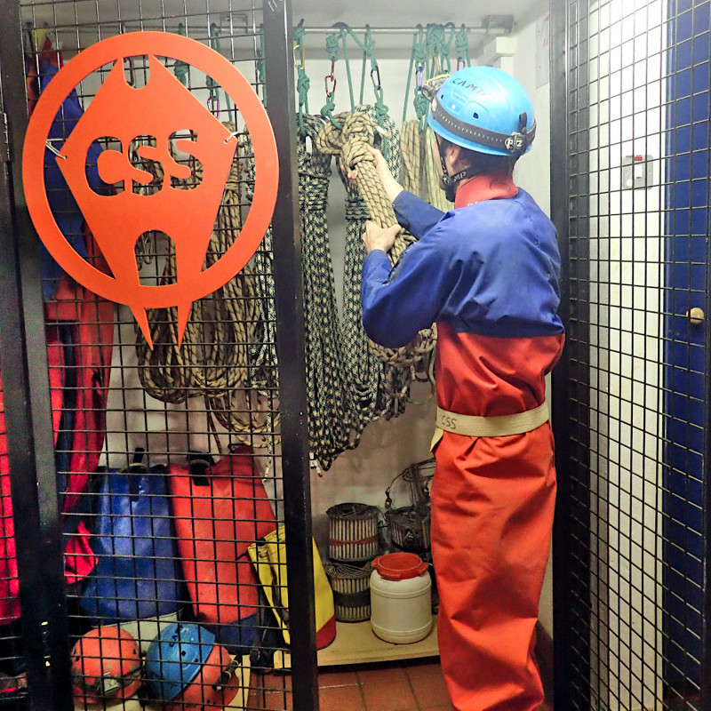 Over the last few years CSS has acquired quite a lot of extra caving equipment, including new larger tackle bags and 200 metres more SRT rope than we had previously. We’ve also acquired a collection of oversuits, helmets and lights for beginners to borrow, making us not only better equipped for all kinds of caving trips but also for introducing others to the wonders of the underground world. The challenge has been where to store all these new additions. The wooden “tackle wardrobe” was a temporary solution, but this was far from ideal and we had nowhere to safely store any equipment that was not yet dry enough to put away after cleaning.