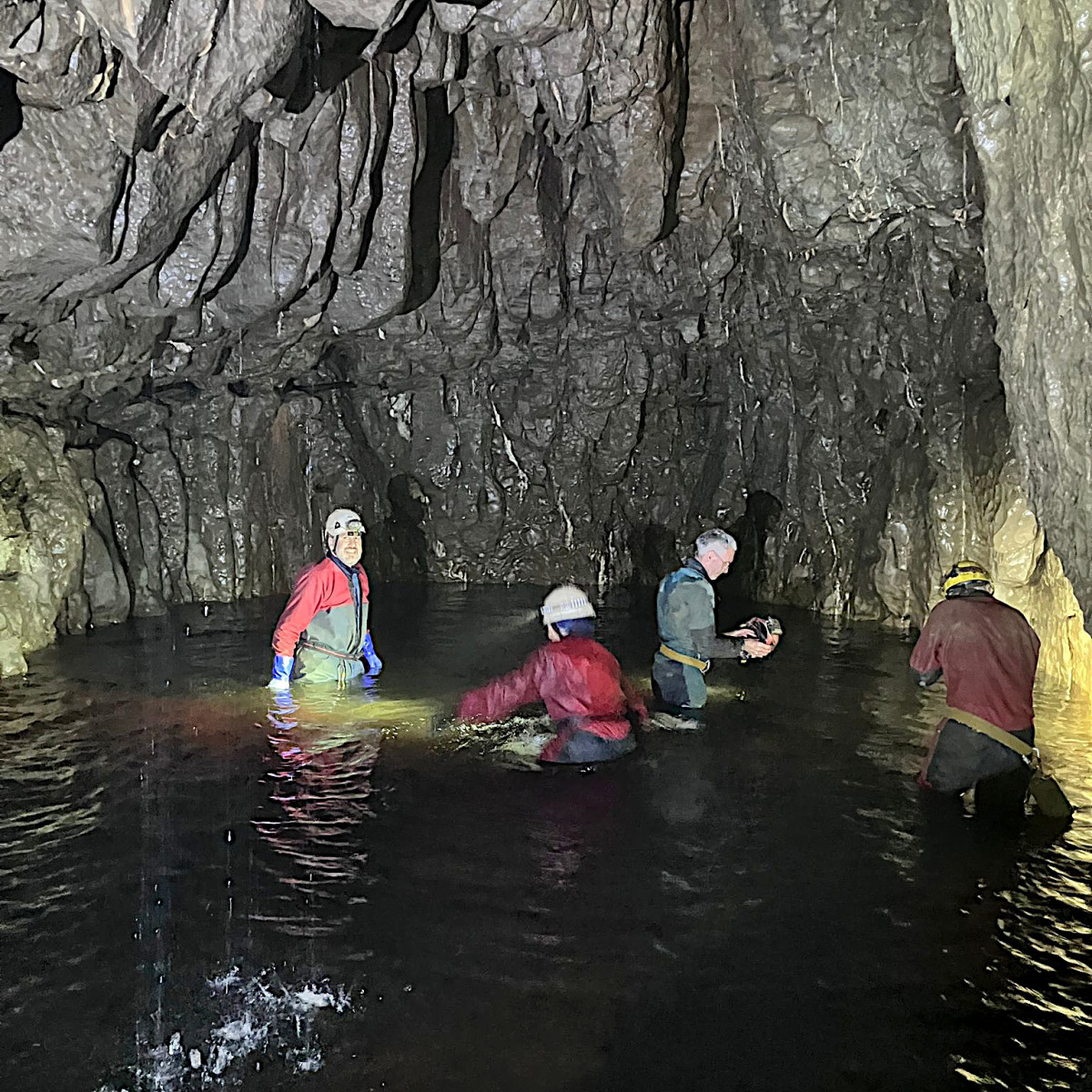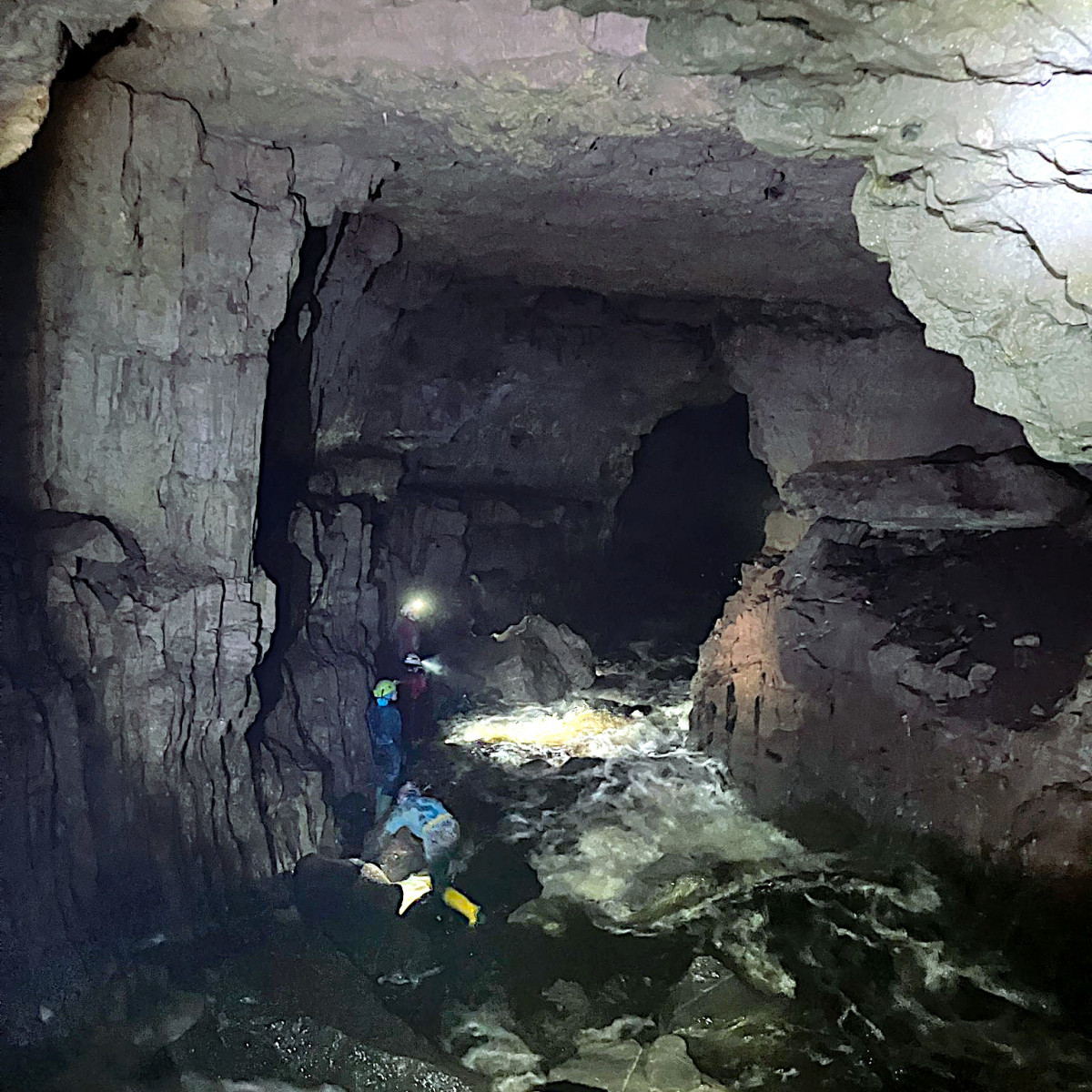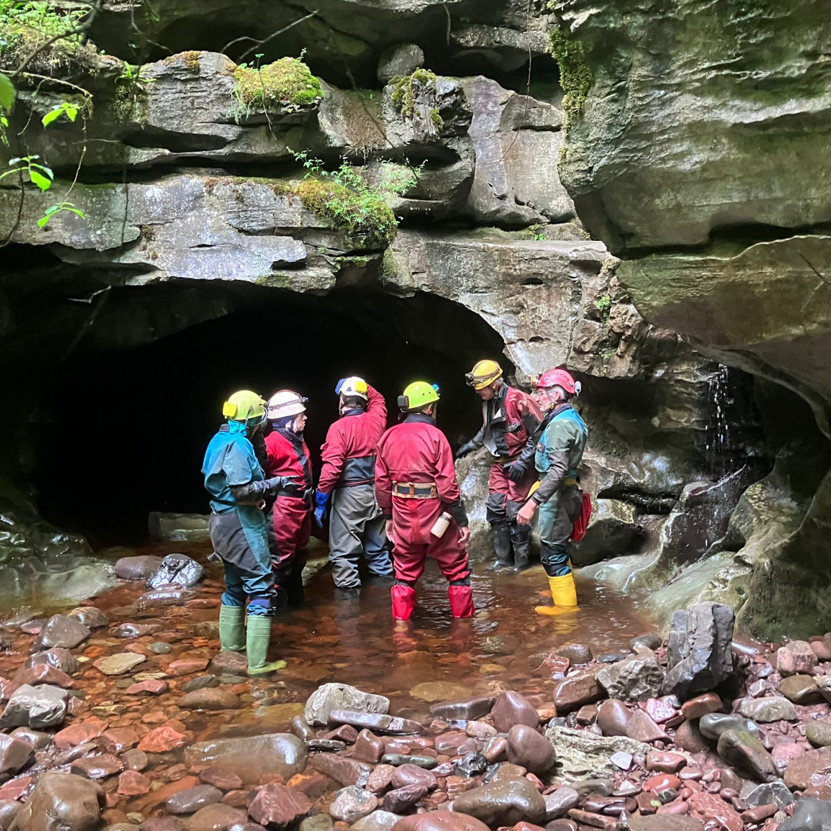 Members arriving early embarked on the first trip of the summer barbecue weekend with a Daren to Cnwc through trip on Friday. The glorious week of sunshine was still in full swing on Saturday, making the proposed trip to Little Neath River Cave seem even more appealing. However, it transpired that the Neath Valley had endured nothing but rain for the last number of days, so a new plan was hatched to visit the other interesting caves of the valley. This was great fun, and started with an investigative visit to see the submerged entrance of Little Neath River Cave before moving on to Bridge Cave, which sported a streamway more dynamic than usual. Afterwards the smaller caves of Pwll y Rhyd, White Lady Cave and Town Drain were visited on a journey through this scenic valley.