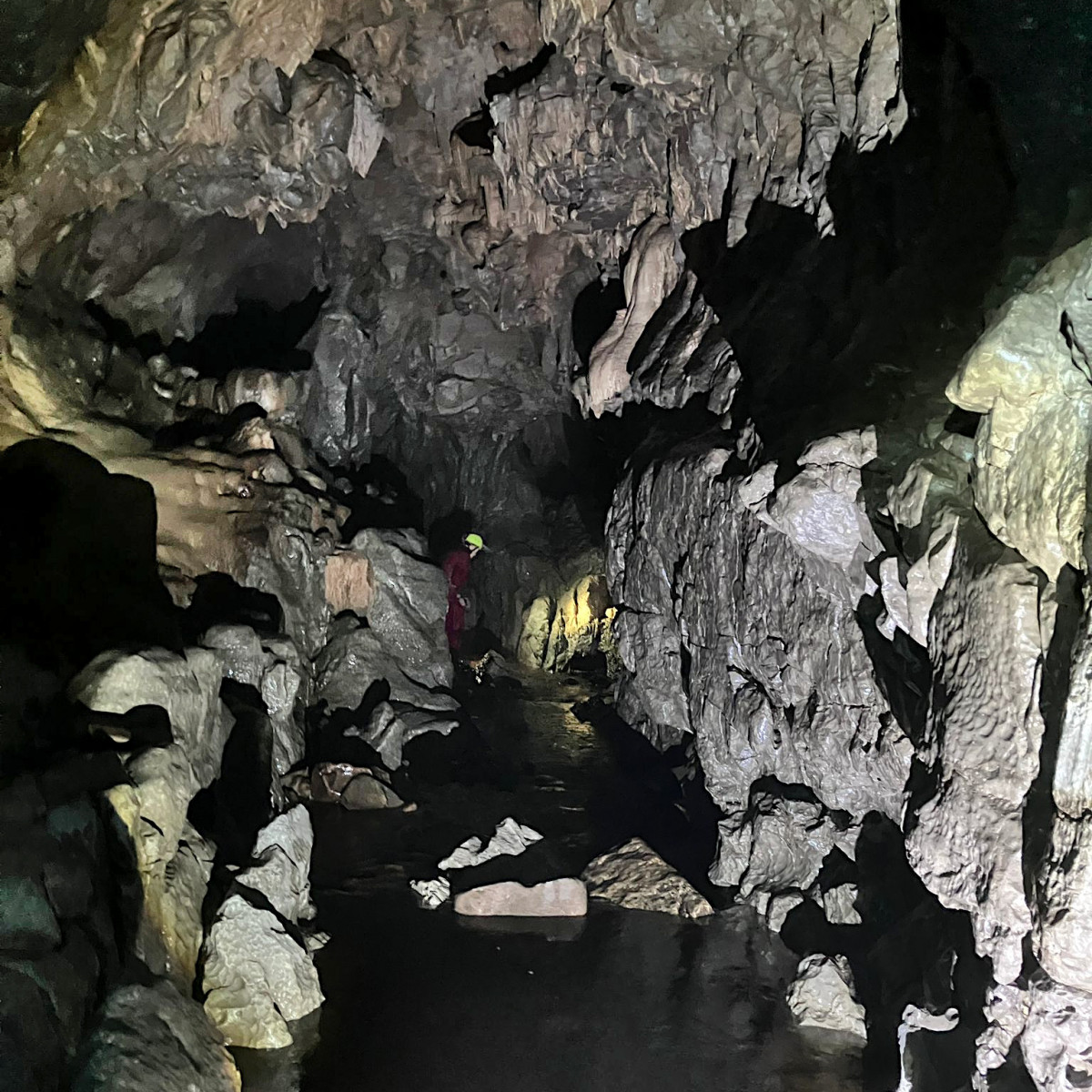 Obviously no Whitewalls meet would be complete without a trip to Aggy, and one of these also took place on the Saturday with a journey along Main Stream Passage as far as North West Junction. Other members spent the day enjoying the sunshine with walks and climbing around Llangattock. All teams were back in time for a feast of barbecue foods in the Whitewalls garden, followed by a slide show presentation of highlights from last year’s club trip to Slovenia. Sunday saw a caving trip to see the wonders of Ogof Capel, while others went for walks in the sun or continued work on the cottage.