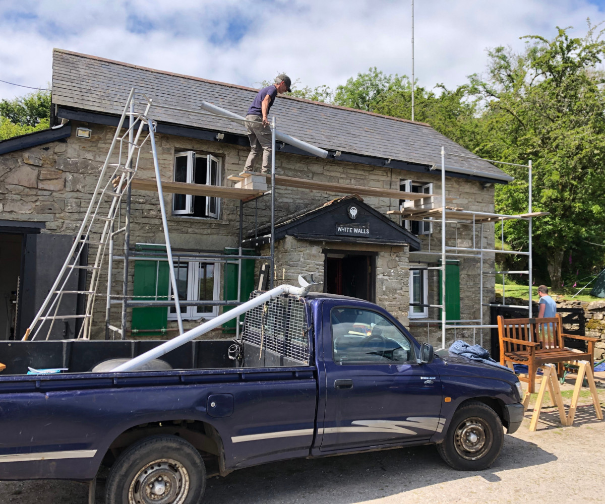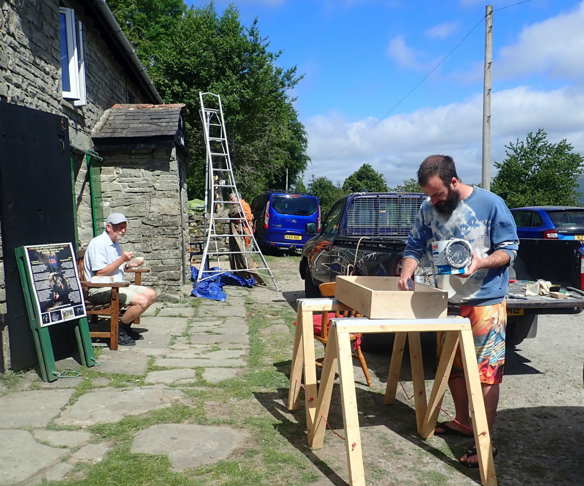 With most of the renovation of the Old Darren Sunday School complete, it was high time Whitewalls was also given a spruce up. So with a list of tasks for all skill levels, a team of willing helpers and beer and cider on tap, plenty of good work was done on the five days leading up to the summer barbecue weekend.