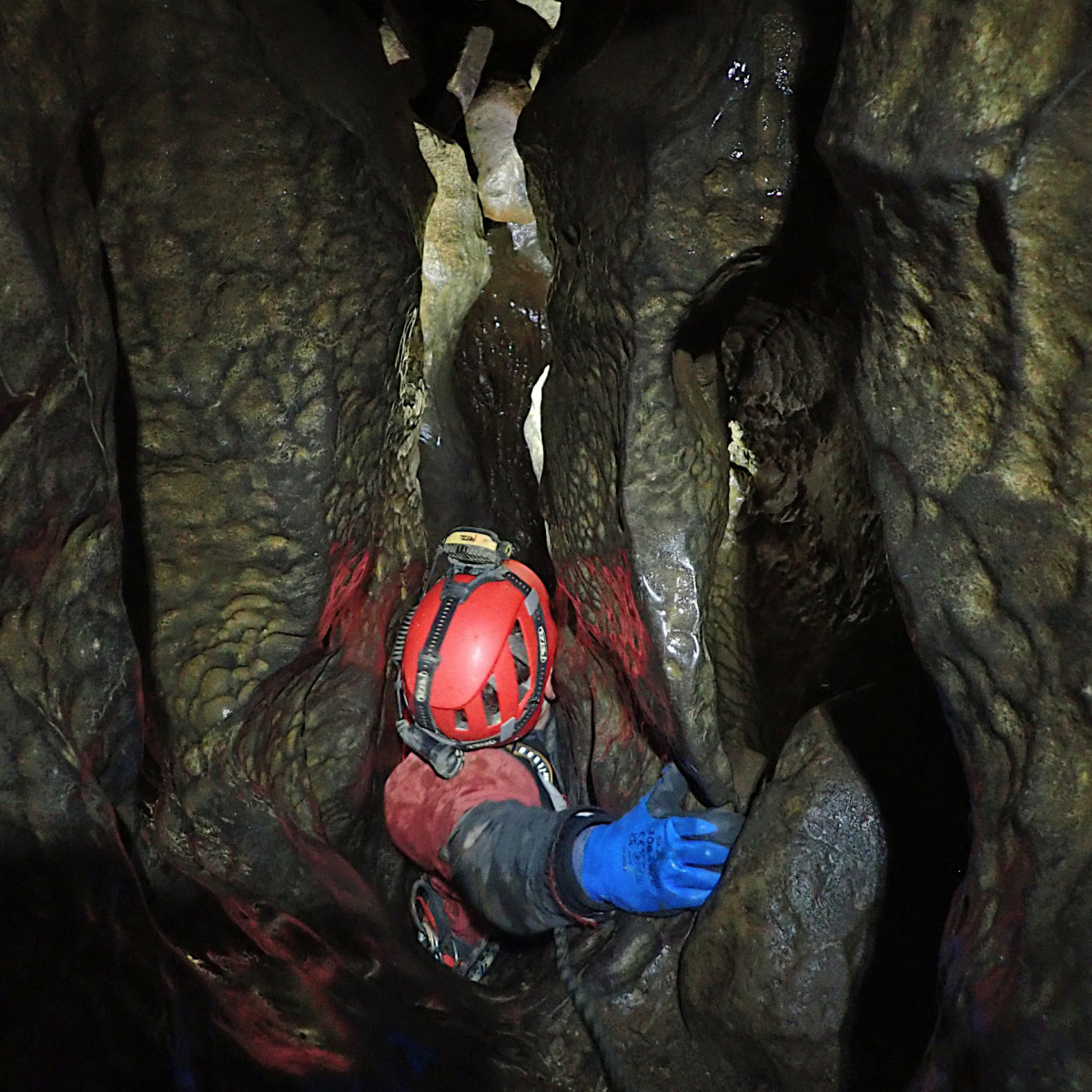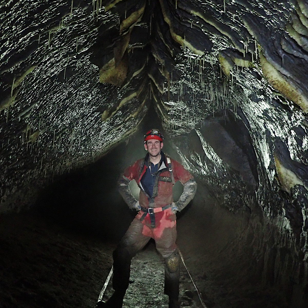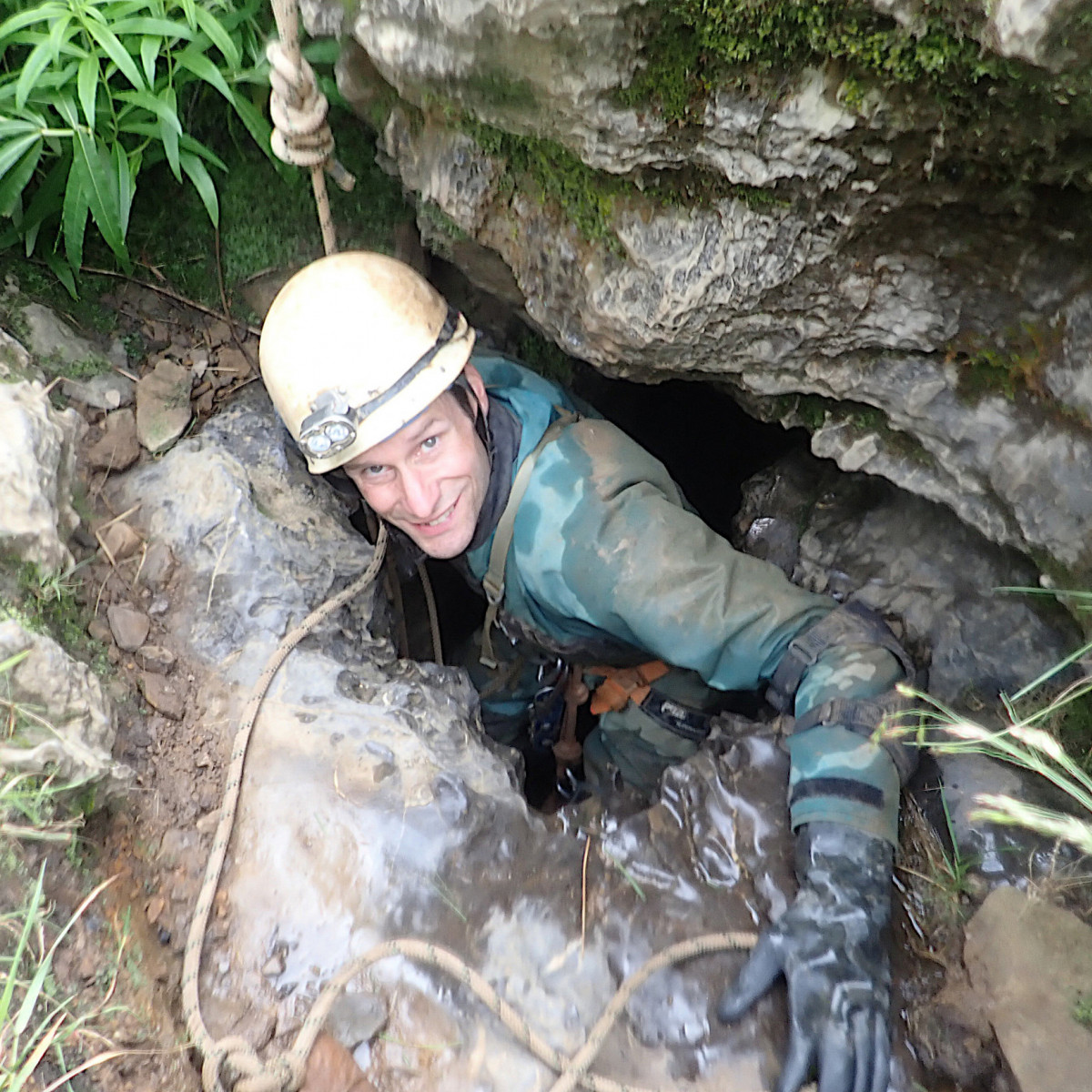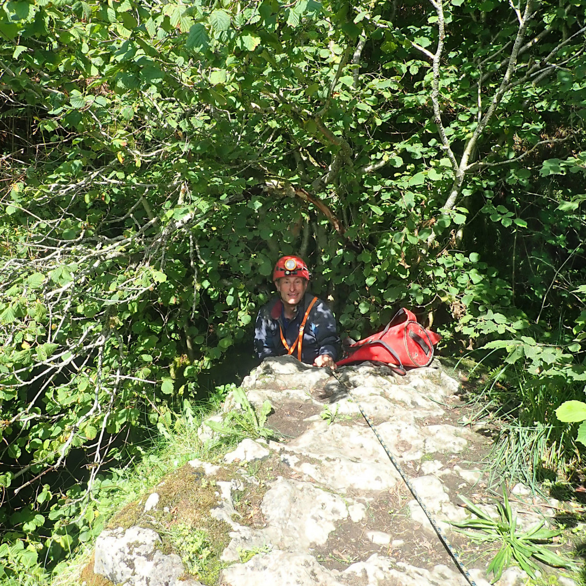 Wednesday’s caving trip was to the relatively new discovery of Mayday Hole in Dowlass Moss. This multi-pitch SRT trip offered a very different trip to that undertaken the day before with a medley of short pitches and some interesting squeezes to negotiate along the way. With the team reinforced by additional members, Thursday saw another exchange trip, this time in the mighty Easegill system. Team “Cowboys” entered via Cow Pot, where the daylight shaft leads to an interesting route with some rather exciting rigging to the impressive final Fall Pot pitch into the master cave. Meanwhile team “Top Cats” braved the horseflies and extreme sun on the way up to the Top Sink entrance, then followed the narrow meandering stream passage of the upper reaches of the system, tackling two short pitches and a number of traverses, to reach the main cave system beyond. Both teams then traversed the large, impressive and very muddy high-level passage over the Main Drain in opposite directions to meet in the middle, then exit by the other entrance, passing The Minarets and the Painter’s Palette along the way.